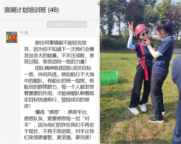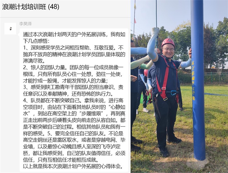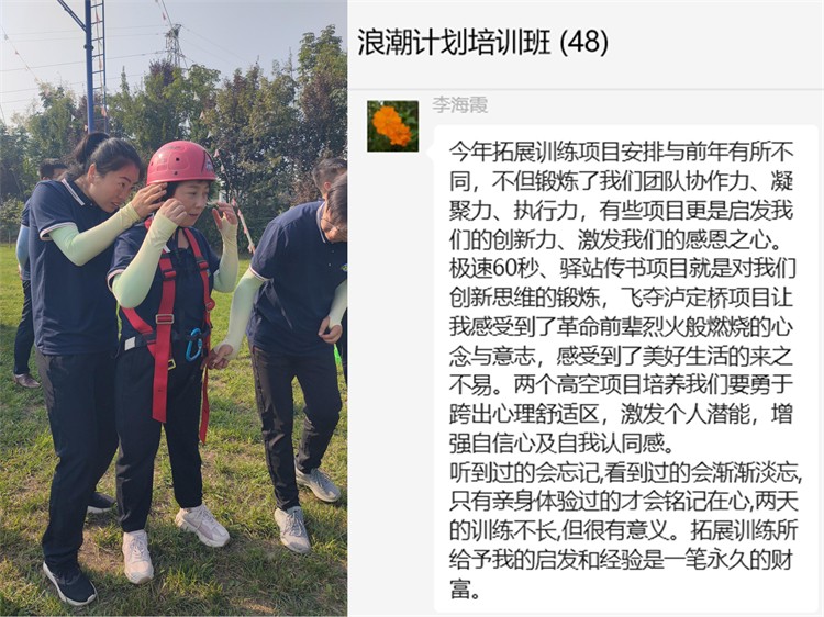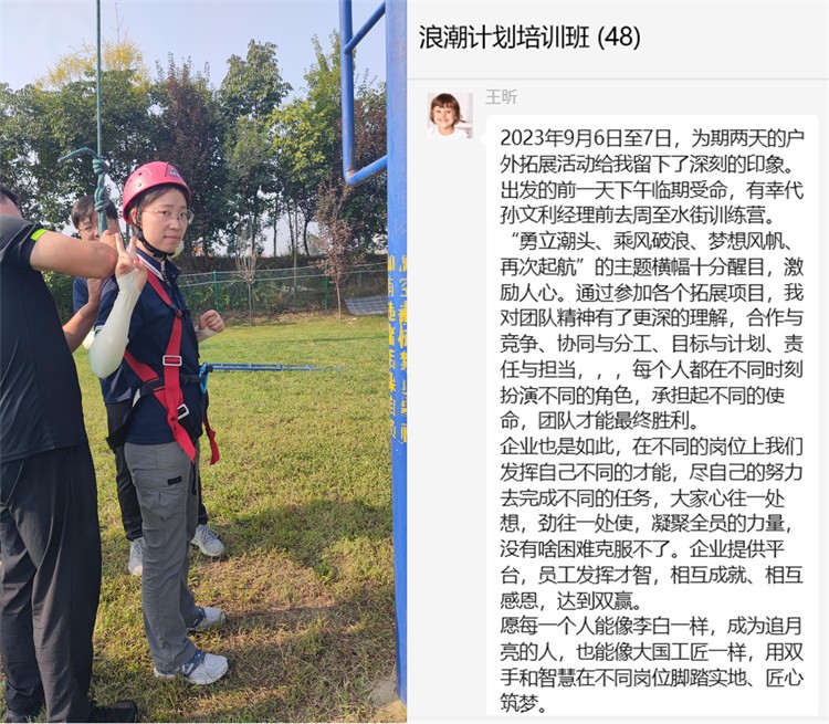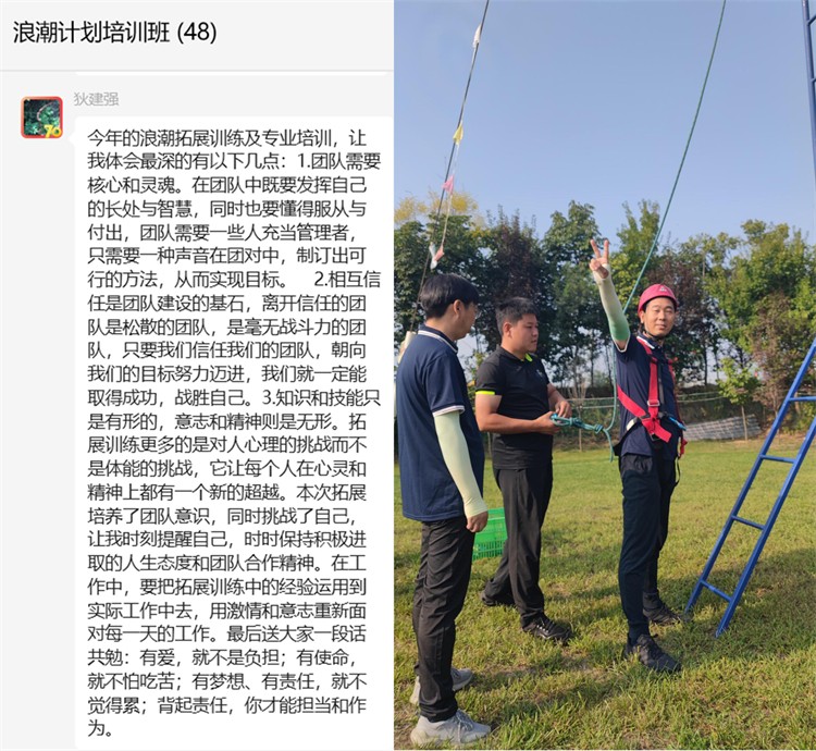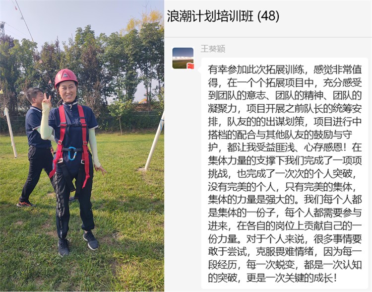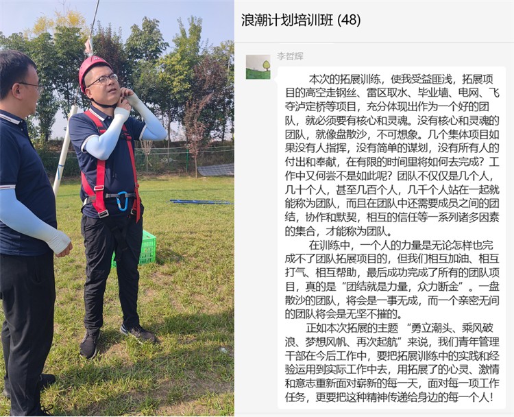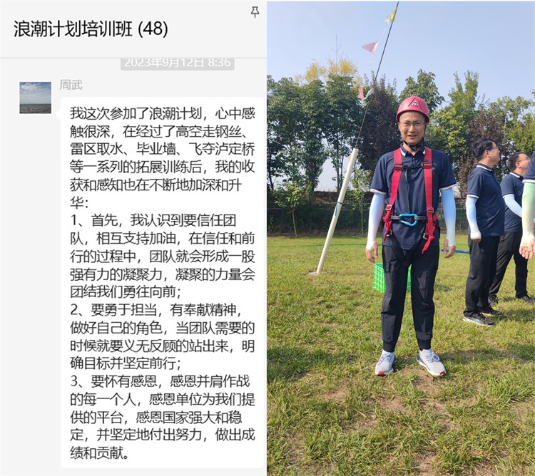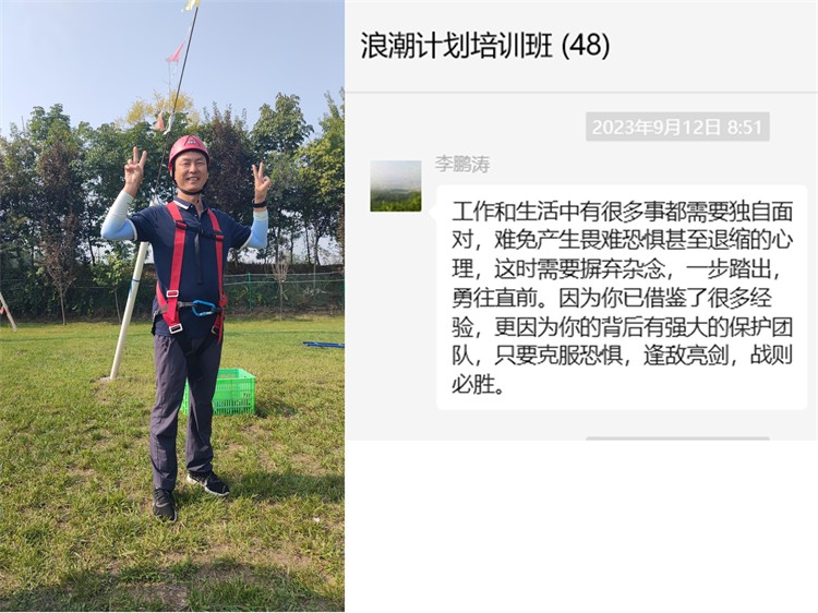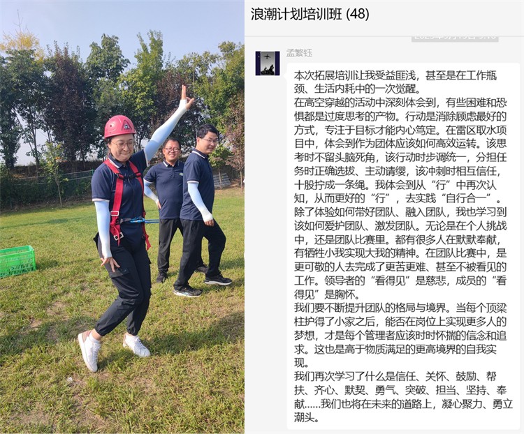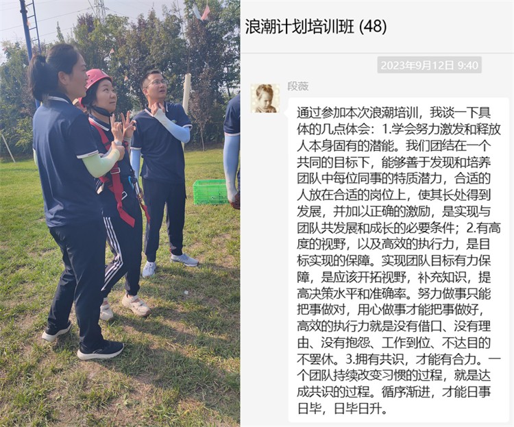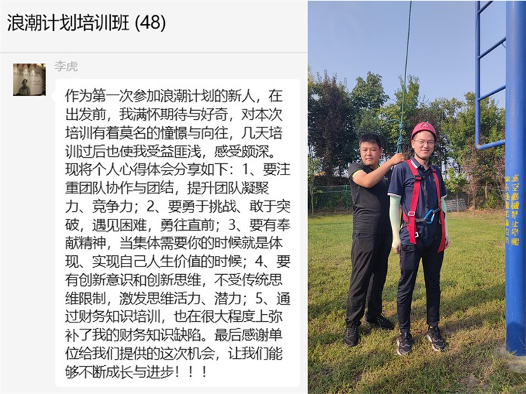 2023年9月6日--8日,陜西工勘院青年管理干部人才續(xù)航項目“浪潮計劃”培訓(xùn)班(第三期)圓滿結(jié)束。為期兩天的戶外拓展培訓(xùn)和一天的《非財務(wù)人員的財務(wù)管理知識》理論培訓(xùn),給大家?guī)砹瞬煌瑢こ5木袷臣Z。本次培訓(xùn)激發(fā)了學(xué)員們在困難面前齊心協(xié)力、勇于承擔(dān)的工作斗志和心存感激、樂于奉獻(xiàn)、甘當(dāng)孺子牛的工作熱情,充分展現(xiàn)了參訓(xùn)人員凝心聚力,滿懷激情,攜手并進(jìn),共享成果的精神面貌。培訓(xùn)結(jié)束后,學(xué)員們感悟頗多,紛紛在微信群留下感言 :